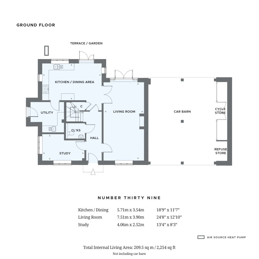 Beautiful four-bedroom detached home with spacious kitchen/dining room opening onto the terrace, complemented by a utility room with side access and a separate study. A full-length living room with doors to the garden and a downstairs cloakroom complete the ground floor. Upstairs, four generous double bedrooms include one with en suite and fitted wardrobes, and another with an en suite and dressing room. A family bathroom and versatile bonus room offer additional flexibility. Externally, the property features a double car barn with built-in cycle store.